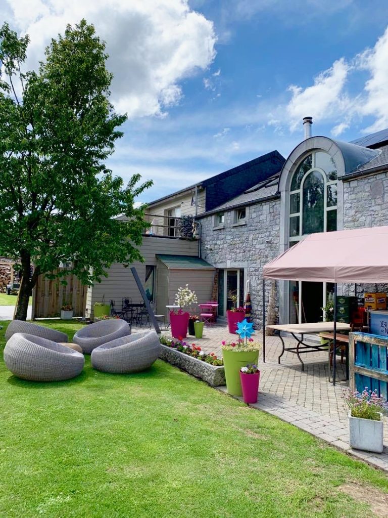 - Espace extérieur clôturé avec tables et chaises